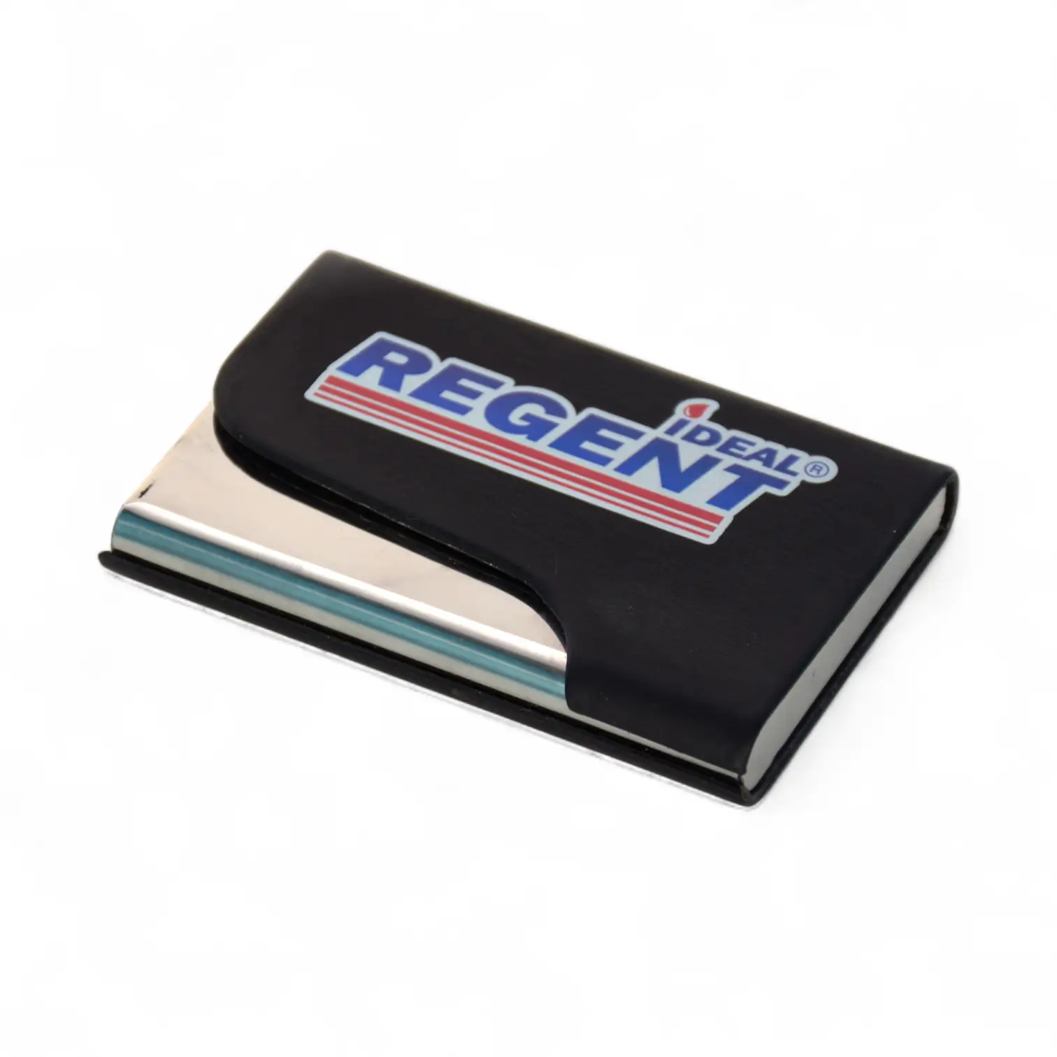 حامل بطاقات فاخر بتصميم أنيق وجودة عالية مع إمكانية طباعة الشعار باستخدام تقنية UV التي تمنح وضوحًا ومتانة فائقة.